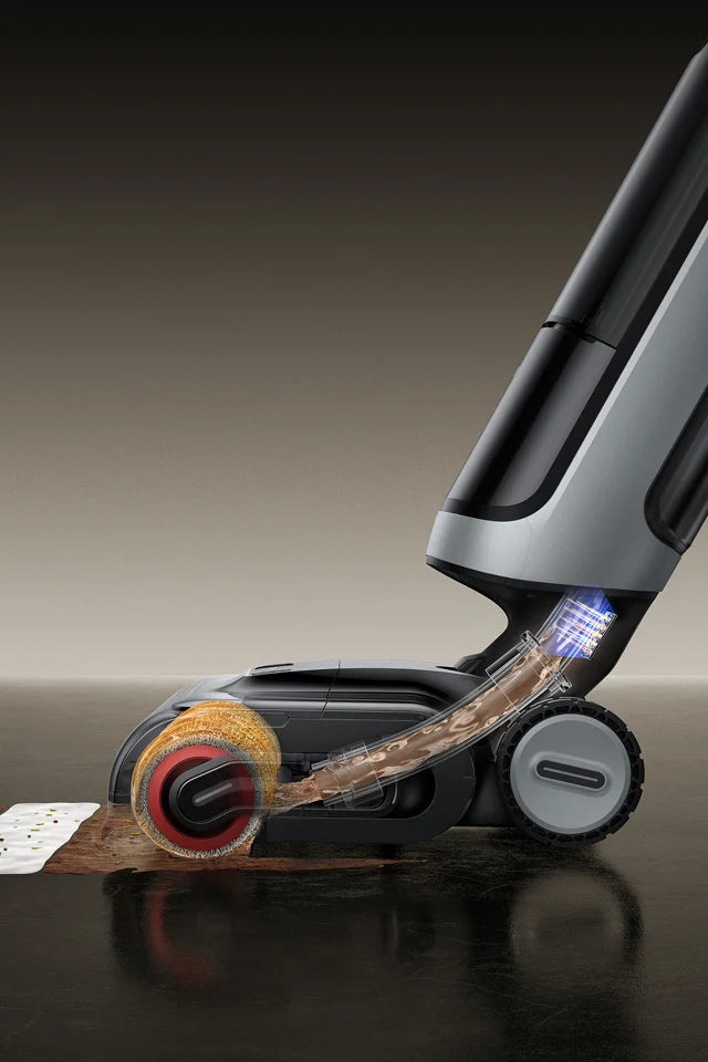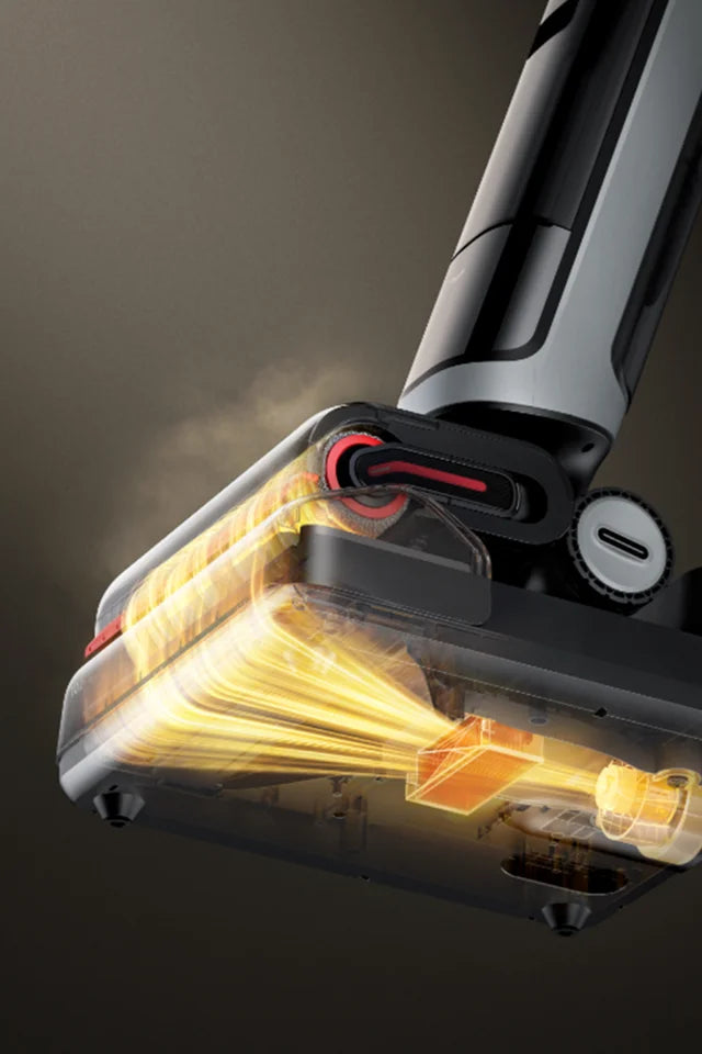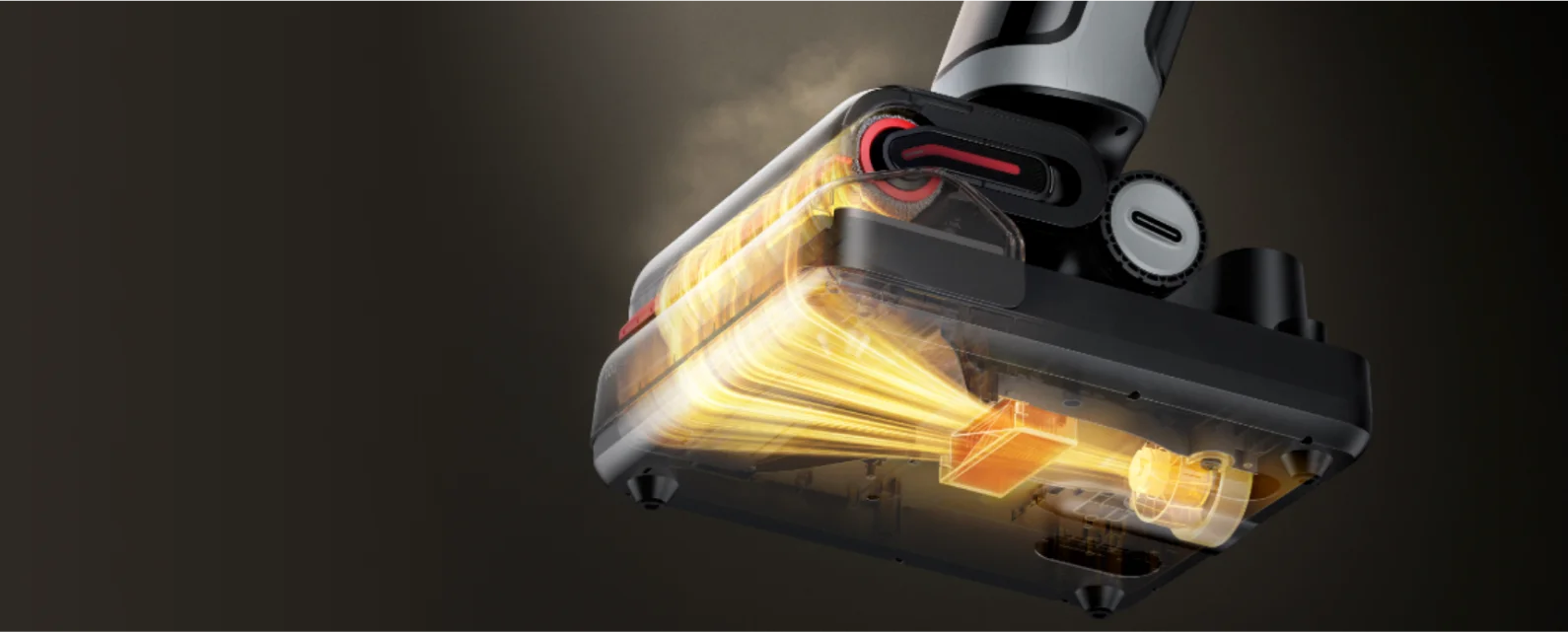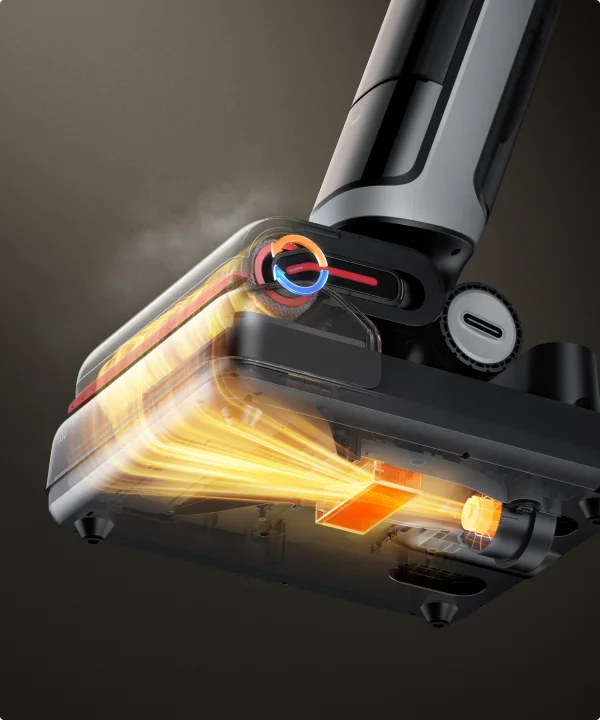 H15 Pro Heat's RGB sensor works during floor cleaning and contributes to an intelligent self-cleaning system. It detects and adapts to the soiling level of the brush and base, providing thorough self-cleaning, and quickly removes leftover debris from the roller brush.