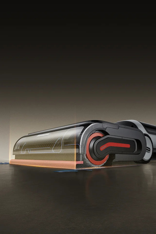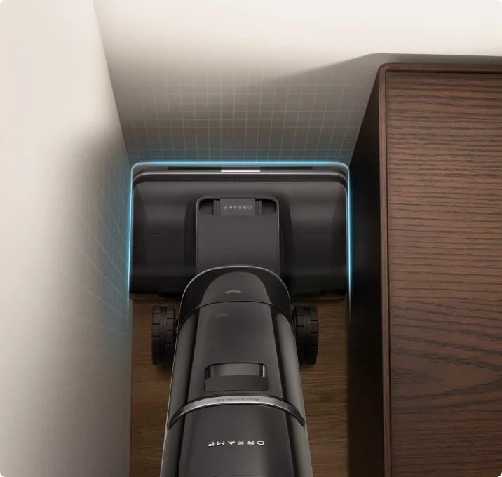 *Triple edge cleaning: The distance between the wall and the front, left, right sides of the brush can be reduced to 0mm for dust removal, based on GTT Surface Cleaning & Air Treatment Laboratory.