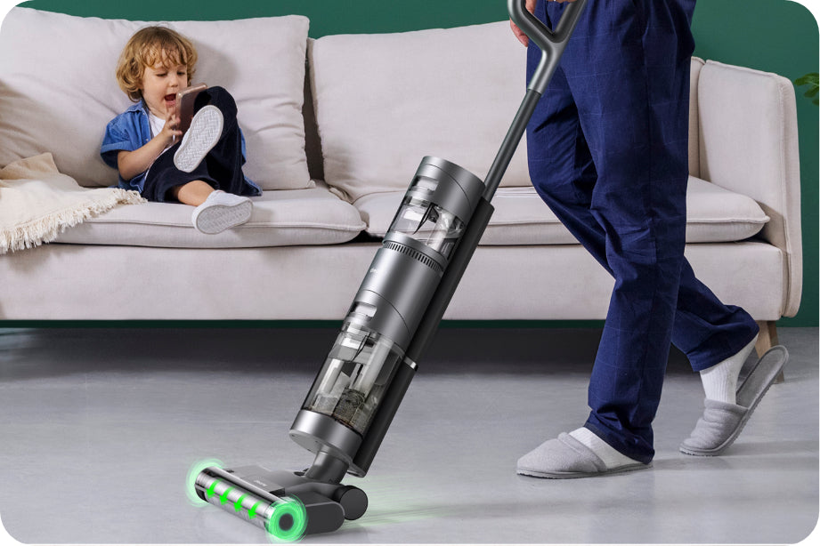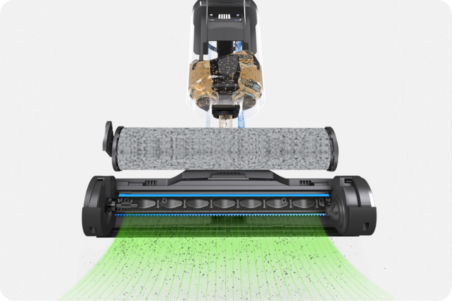 Vacuums and mops at the same time when brushing the floor 560 times per minute. Especially useful for the bathroom, kitchen, and balcony. With the Dreame solution* in the package, your floor is cleaner than it looks.
