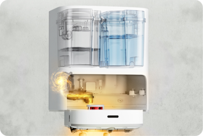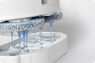 When the mopping cycle is complete and W10 has returned to its base for the last time, the pads are rinsed and then dried with hot air to prevent mildew or bacteria growth.