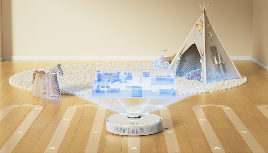 224m² (2410.95 sq ft): Tested by Dreame Lab in vacuuming mode under quiet suction settings. Actual performance will be based on the home environment.