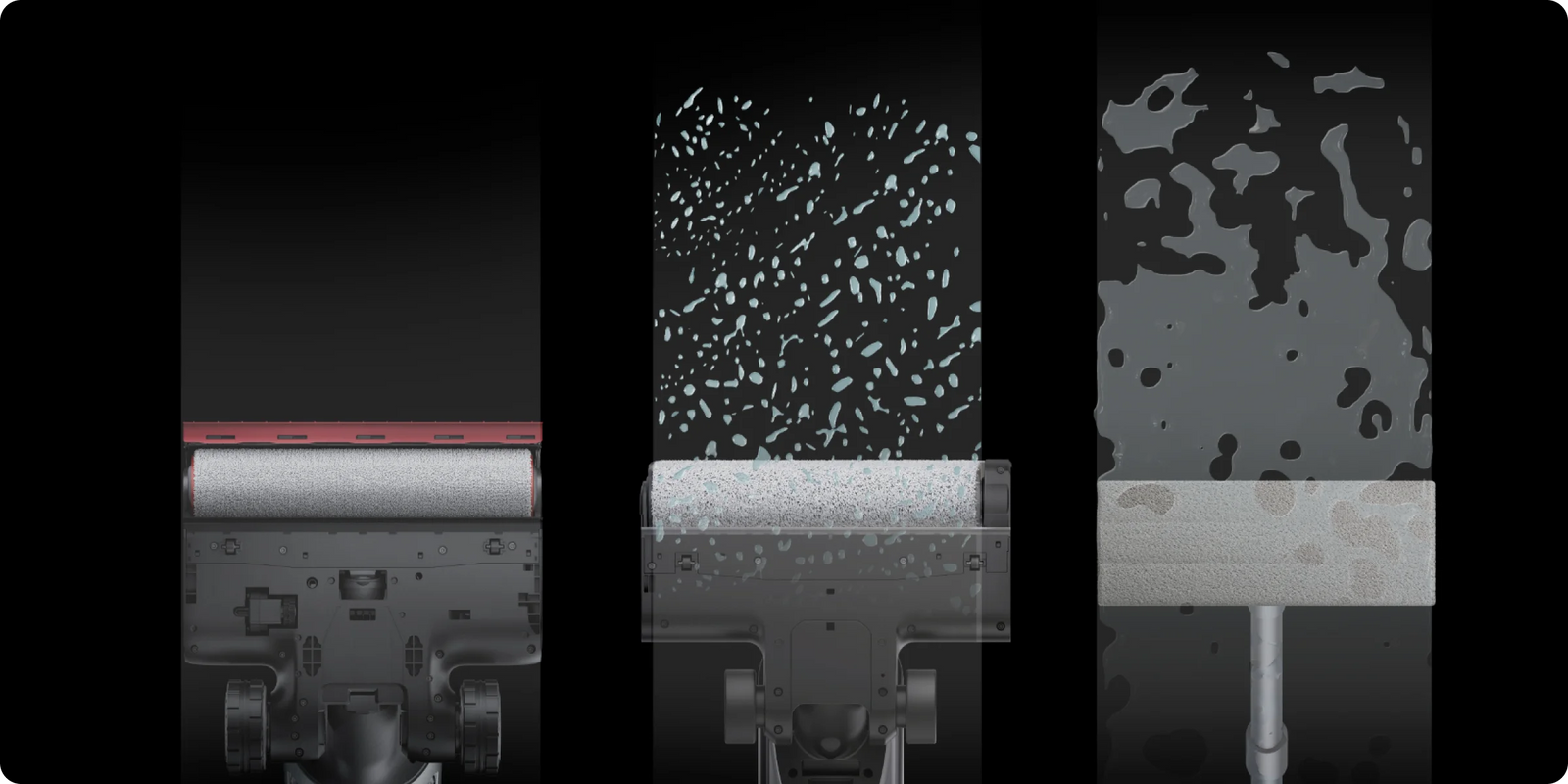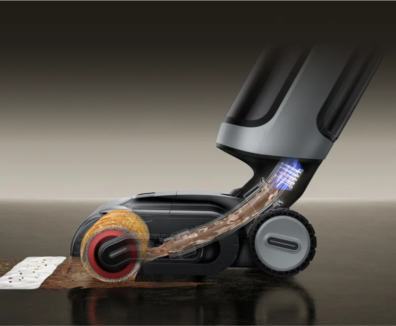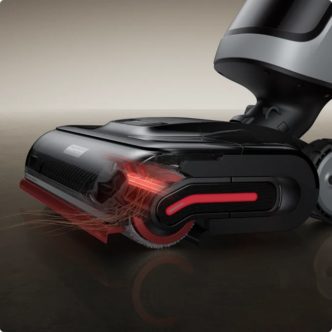 H15 Pro Heat's RGB sensor works during floor cleaning and contributes to an intelligent self-cleaning system. It detects and adapts to the soiling level of the brush and base, providing thorough self-cleaning, and quickly removes leftover debris from the roller brush.