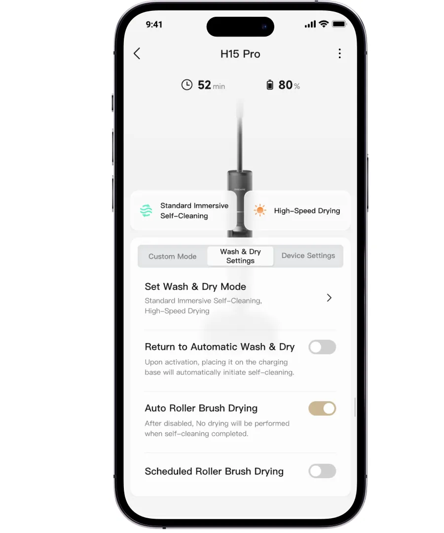 Floor Washing Modes Auto, Suction, Ultra, Custom