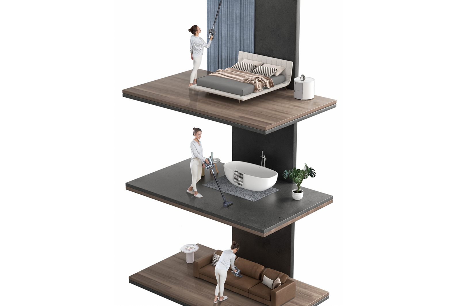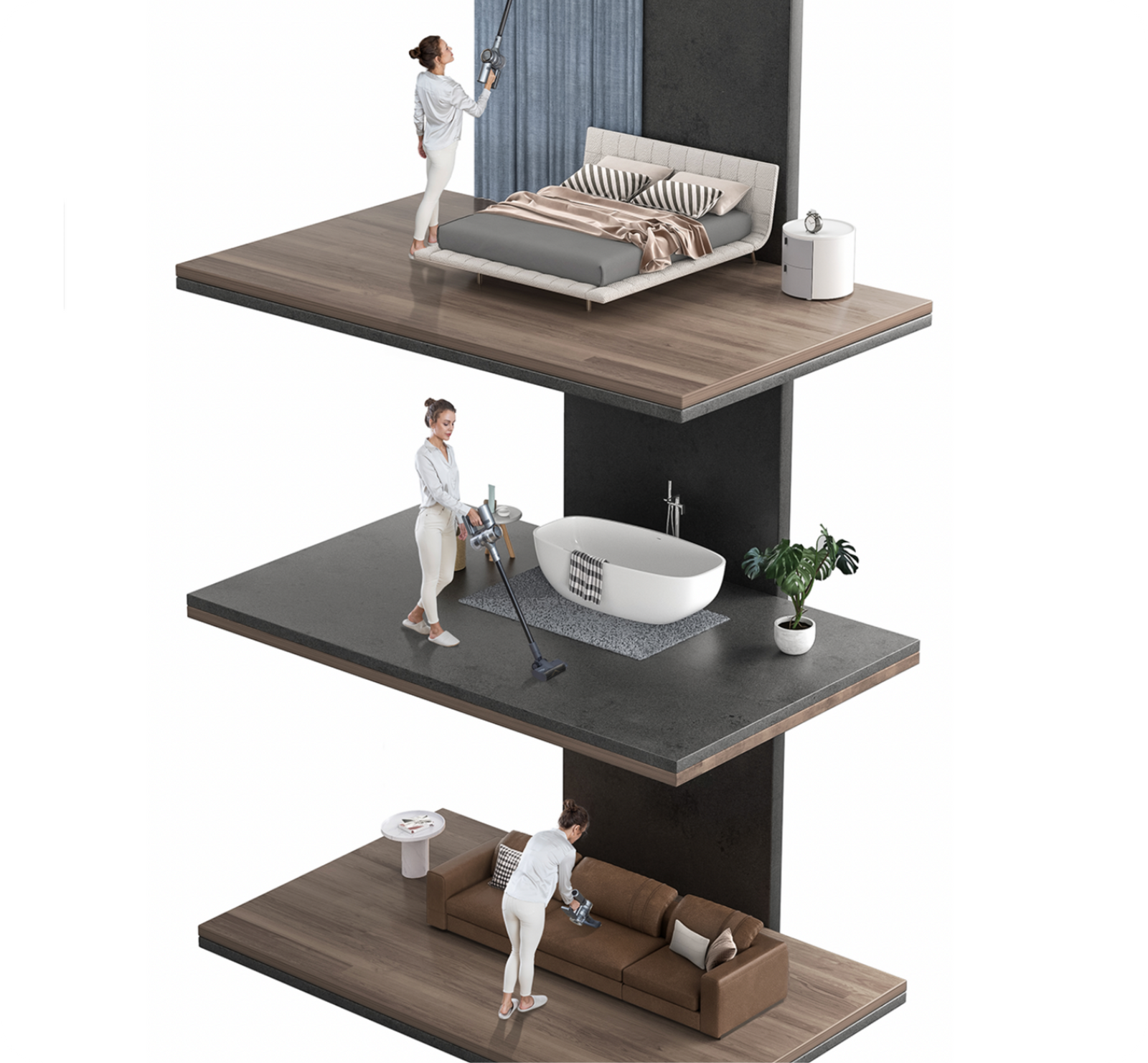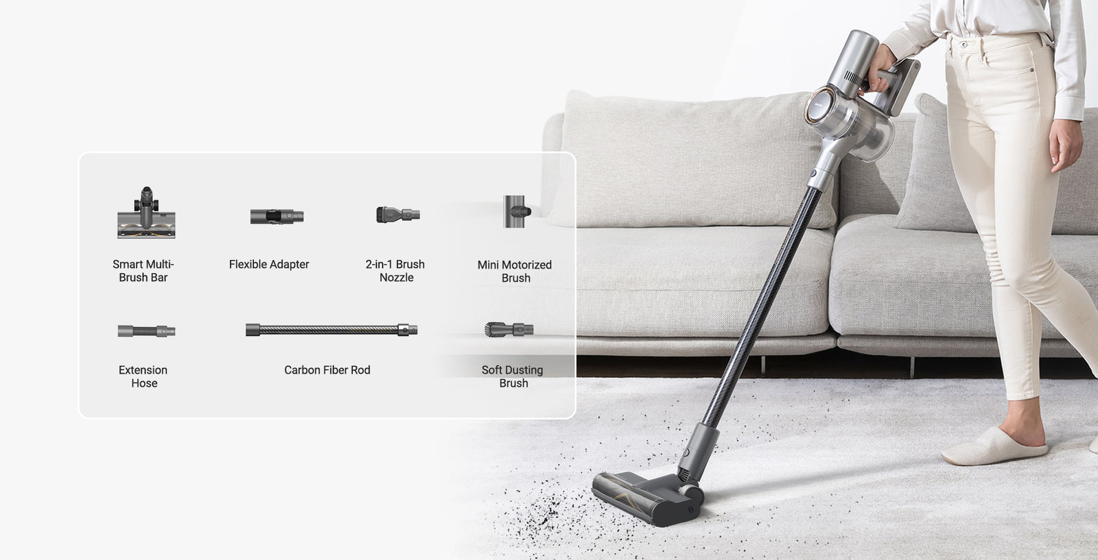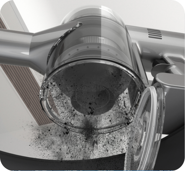 Powerful on both hard floors and carpets. Dreame engineers have made the most of the 160,000RPM motor, airtight structure, and streamlined architecture to create a powerful suction that removes most of the dust accumulated in crevices.