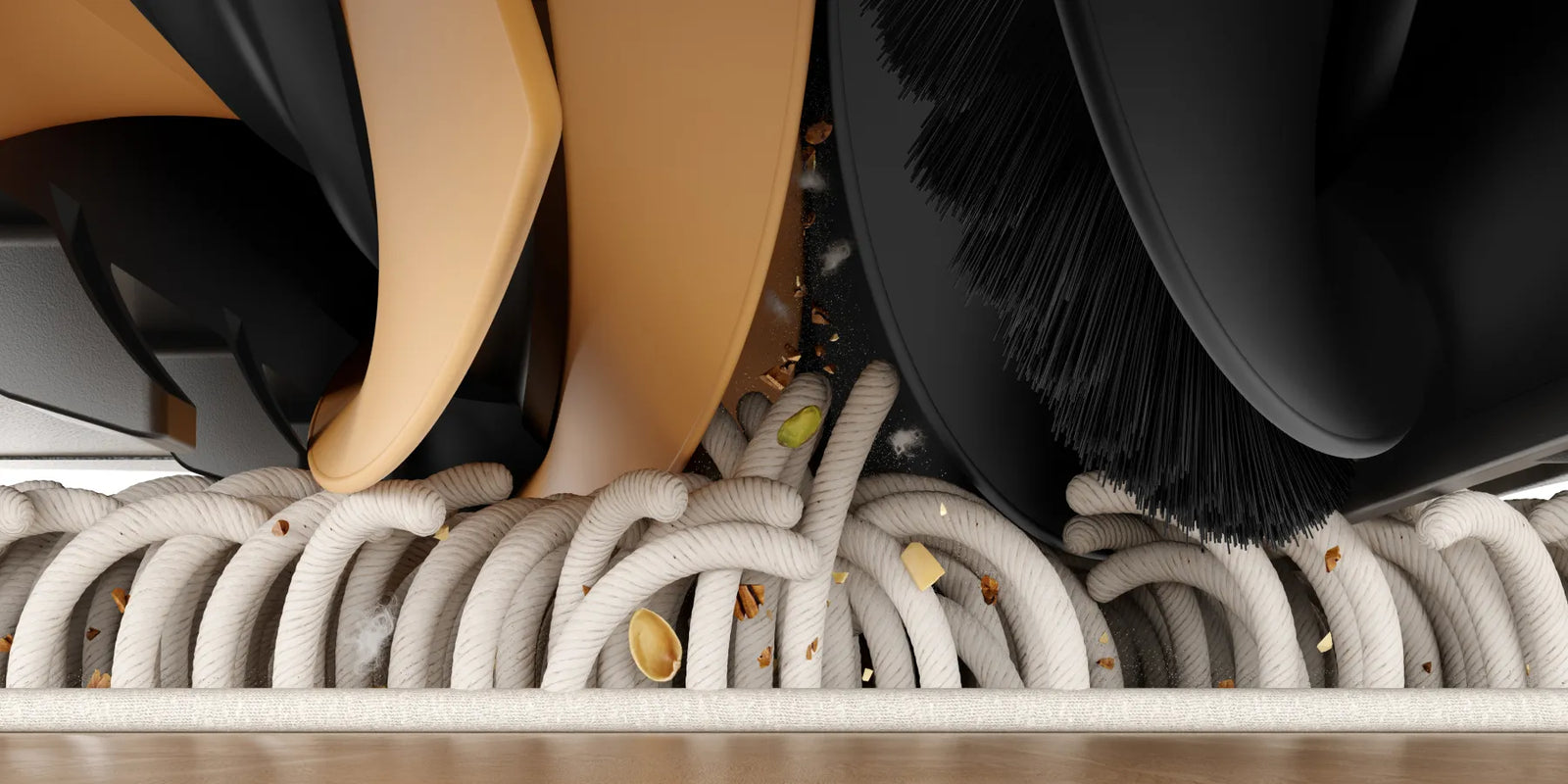 HyperStream™ Detangling DuoBrush delivers 100% anti-entanglement*, expertly managing hair up to 30cm* long without tangles. Its unique air duct design lifts hair while ensuring a smooth, continuous clean. Compared to a single brush, two brushes double the cleaning power* and are suitable for cleaning in different scenarios, such as floors and carpets. This innovative design enhances cleaning efficiency and keeps noise levels low, leaving your spaces immaculate.