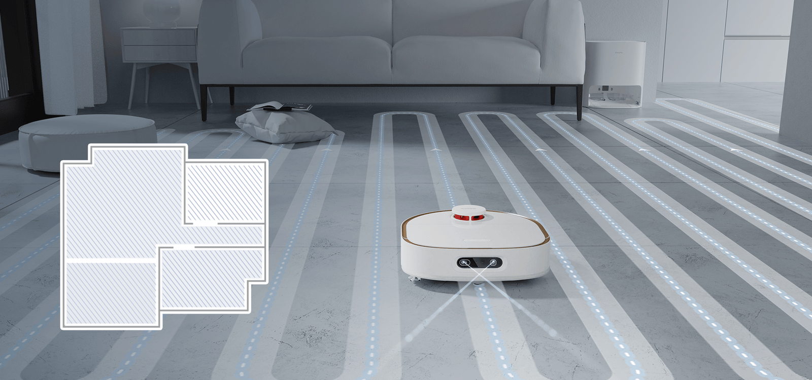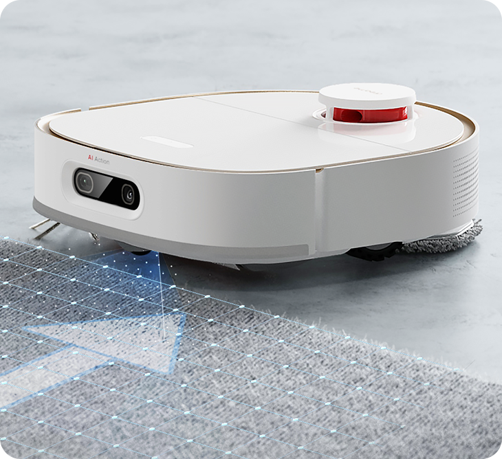 Copes with complex cleaning environments by detecting and identifying obstacles by their size and depth to employ the optimal strategy to clean around them. An advanced AI, RGB camera, and a 3D ToF sensor combine to recognize rooms by type and flooring to intelligently recommend the suction power, mop dampness, and cleaning time for each room in your home.