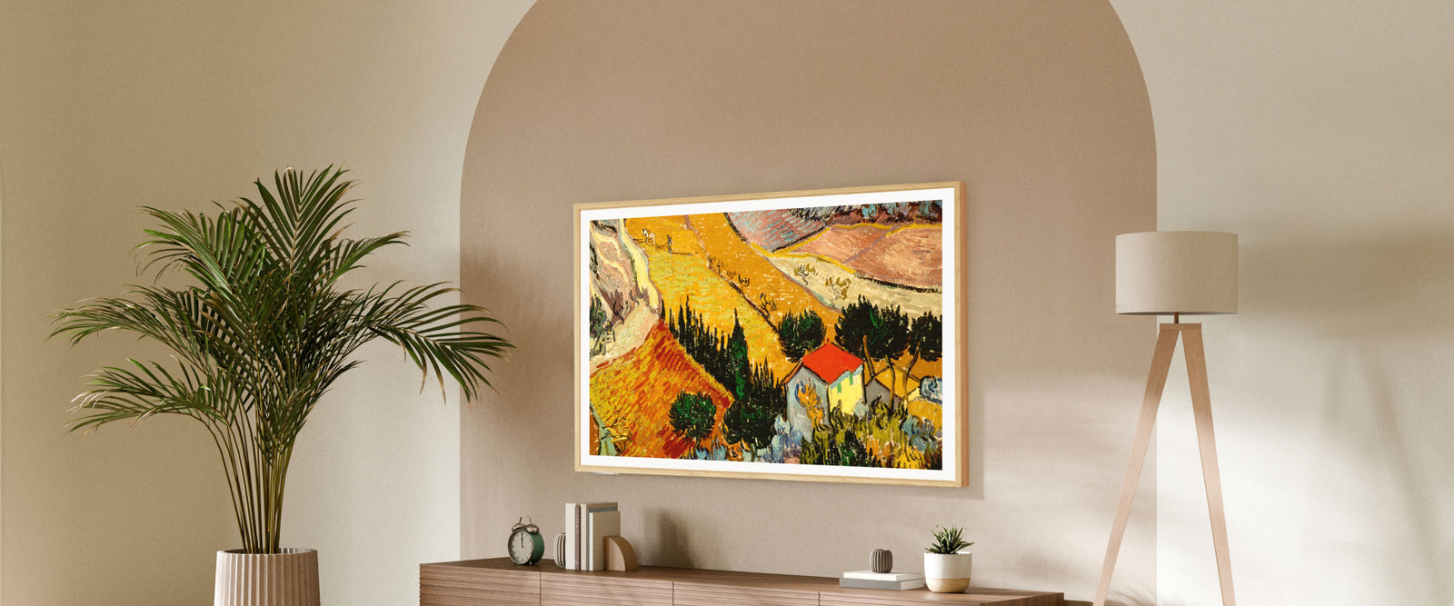 This ingenious design allows the AuraFrame to resemble a piece of art that fits flawlessly against the wall,
