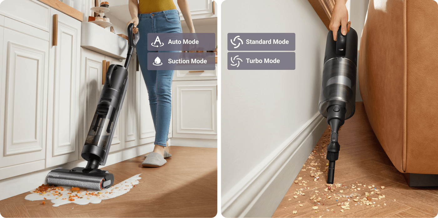 Advanced dirt and mess detection system intelligently adjusts settings according to your cleanup. Get the optimal strength to handle dirt, grime, and spills.