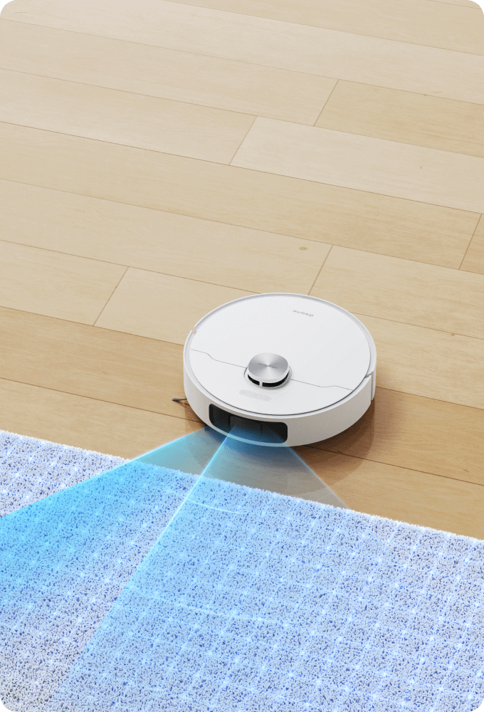 Advanced ultrasonic carpet detection allows L10 Prime to identify carpeting and raise its mops up to 7mm* and keep carpets nice and dry.