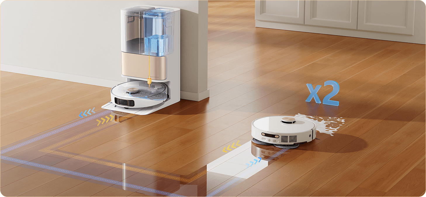 An integrated 80ml water tank keeps the mop continuously wet. The vacuum efficiently washes your floors for as long as required.